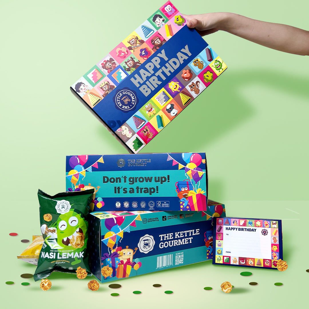From award-winning local popcorn to crispy brownie bites, our snack boxes make birthdays unforgettable. Choose from 3 budgetsโstarting at just RM29!