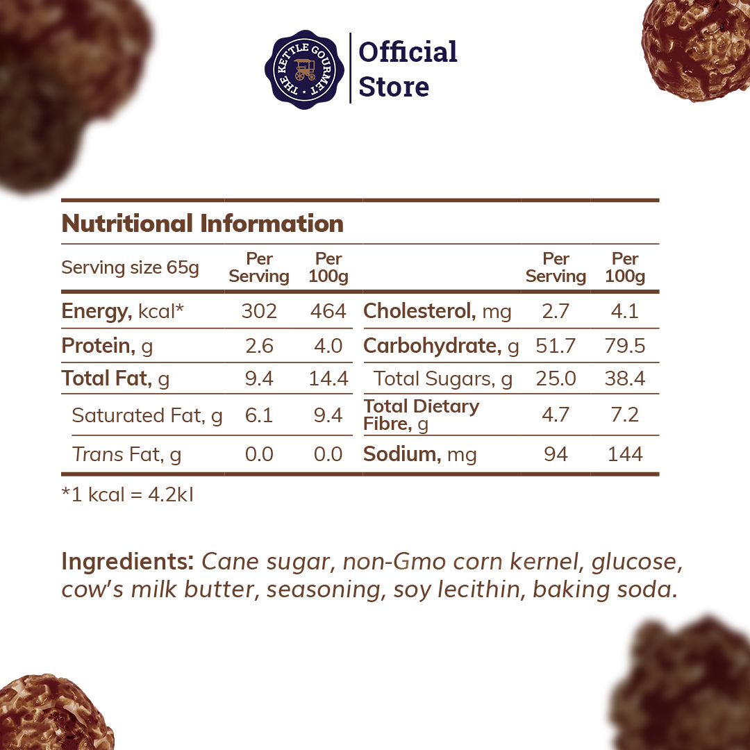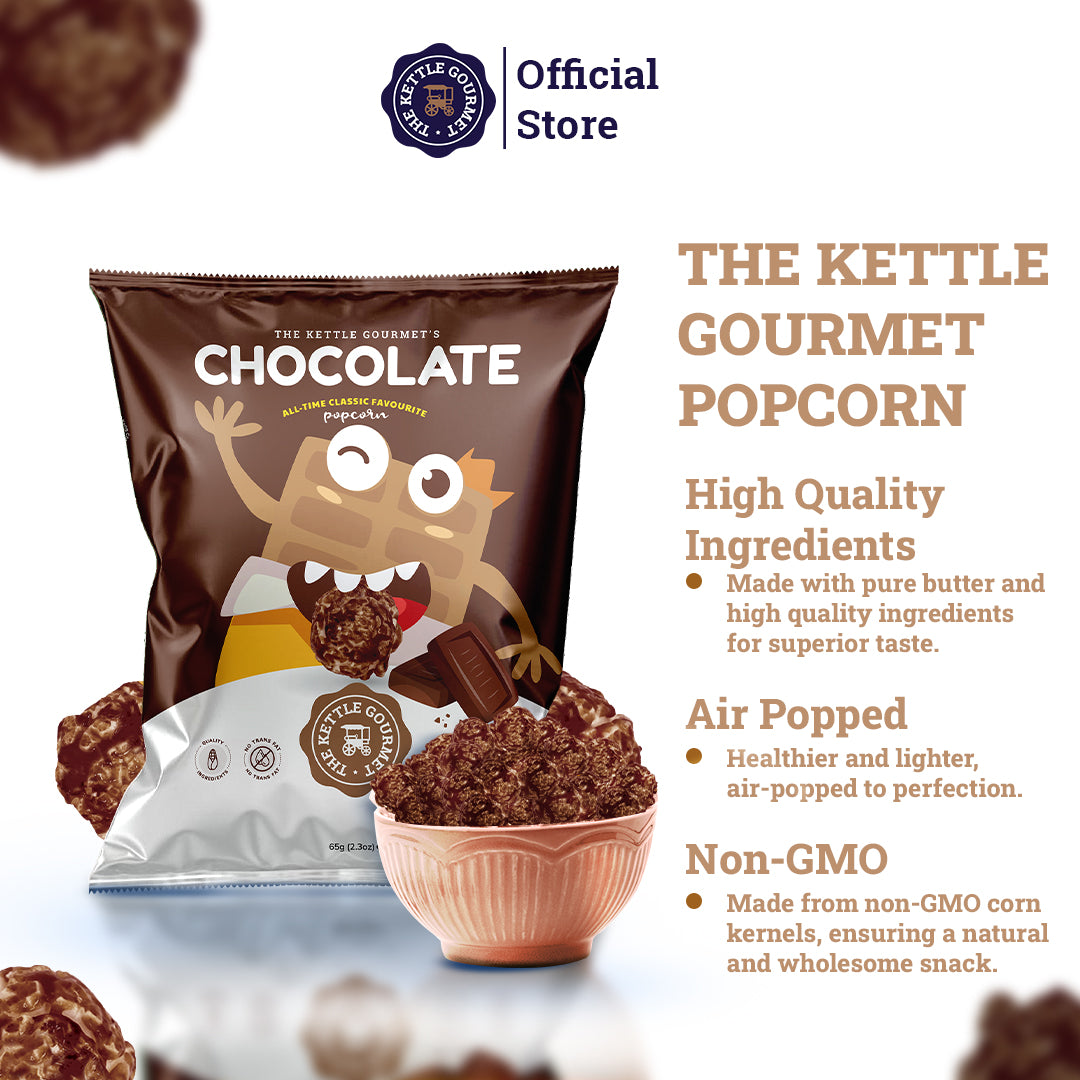 The Kettle Gourmet’s Chocolate popcorn will trigger your endorphins and ignite your love – an unavoidable endeavour. Smooth, scrumptious, popping goodness the way you love it. Part of the All-Time Favourite popcorn series.