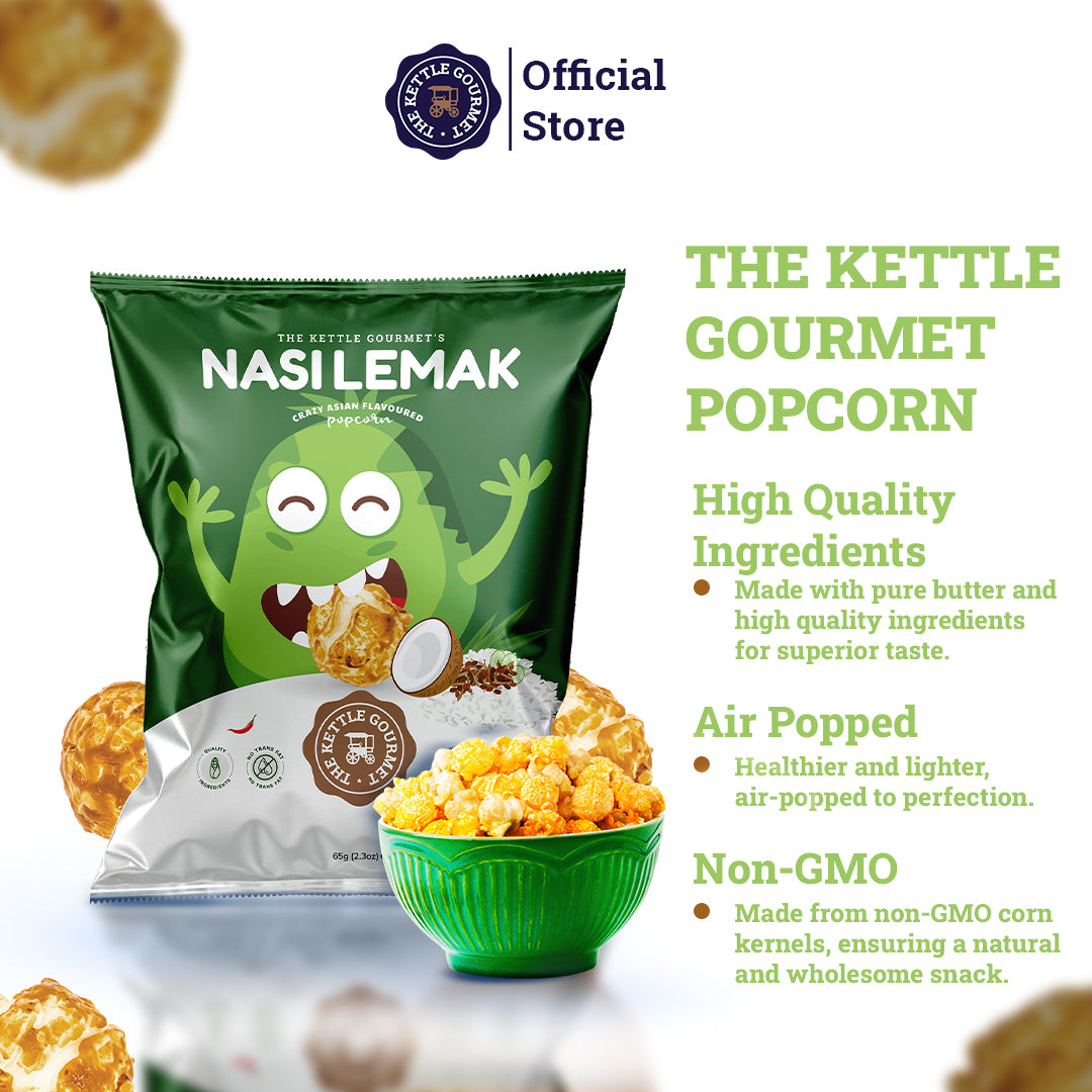 Try our award-winning Kaya Butter Toast Popcorn and our fan-favourite Nasi Lemak Popcorn!
